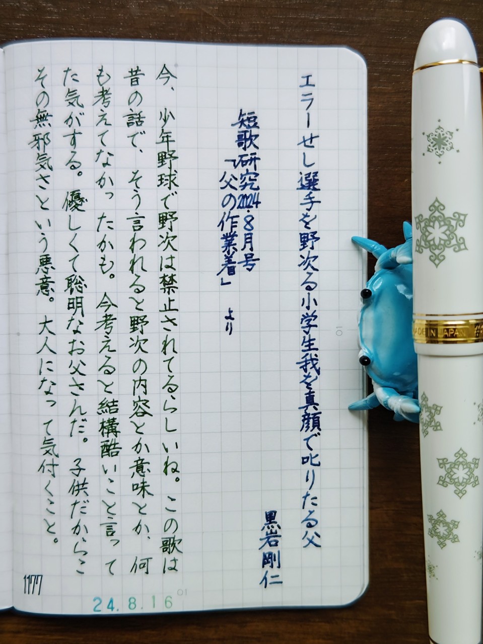 [今日の短歌/黒岩剛仁]エラーせし選手を野次る小学生我を真顔で叱りたる父
