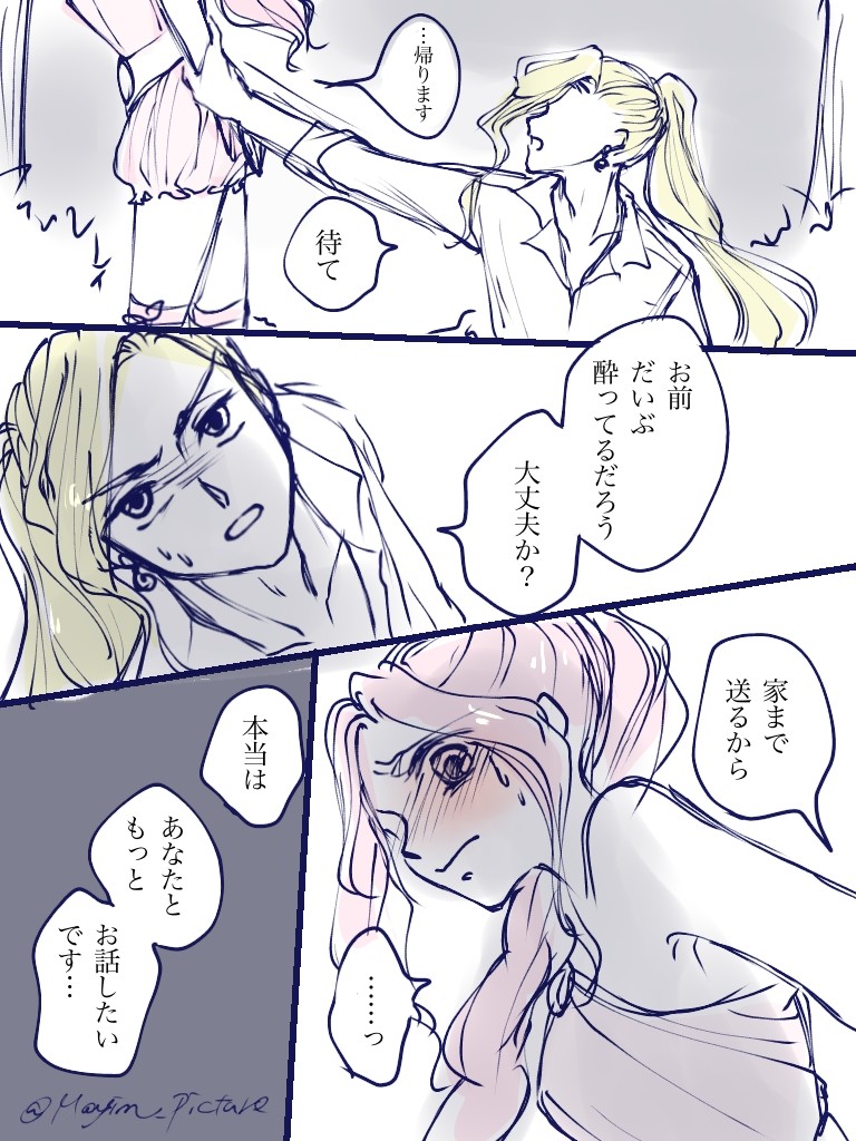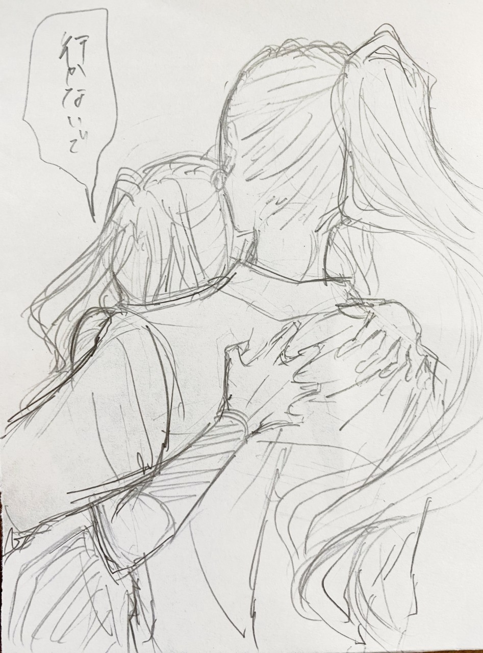 このラフの次が清書なんだけど流石に強引じゃない??😇😇😇 今回はラフ漫画だからいいか… 約1時間後、こうなりました↓…