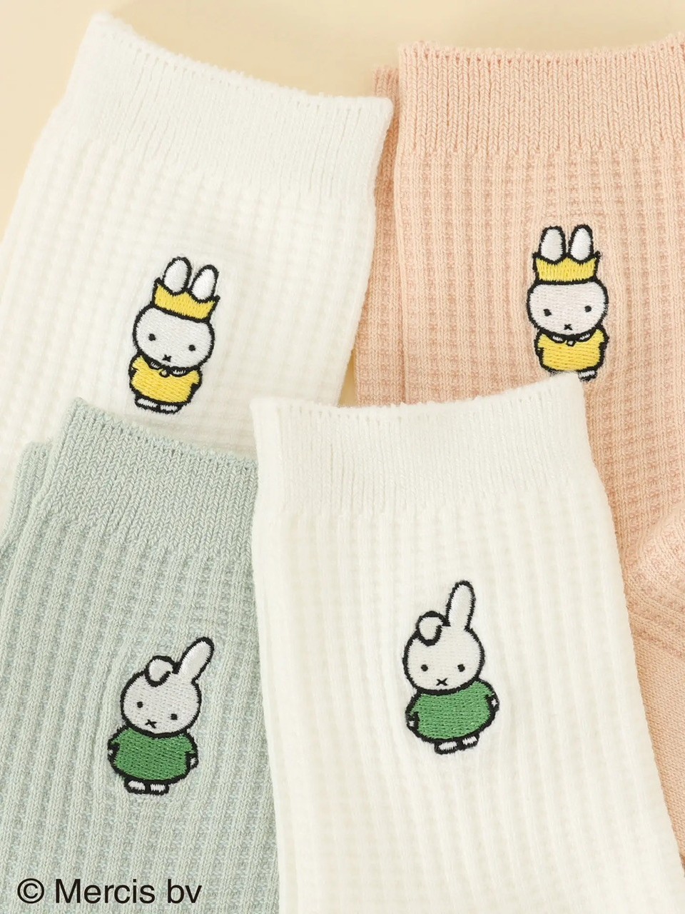 <ミッフィー&ダーン刺繍ワッフル靴下 >