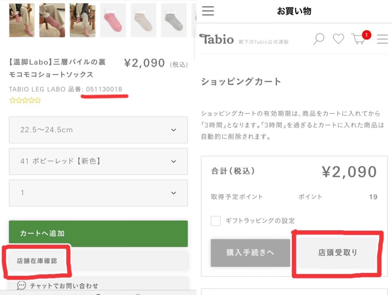 タビオオンラインストアでお近くのお店に在庫があるか確認するか、お店には電話か直接ご来店の際に、お問い合わせください。