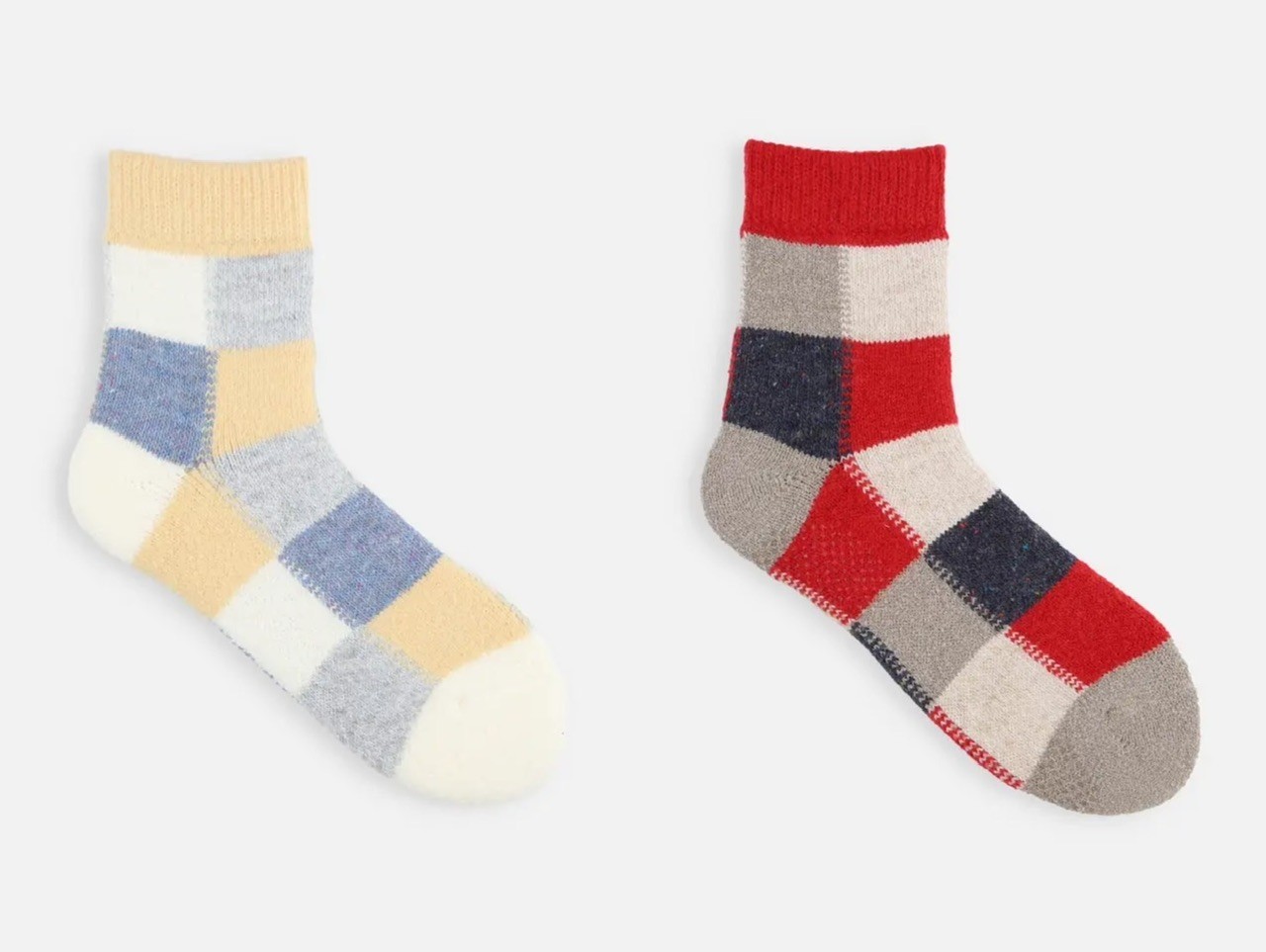 ロングセラー🏅ブロックチェック柄が楽しくてかわいい、長年人気のルームソックス。パイル編みでふわっとしています。
