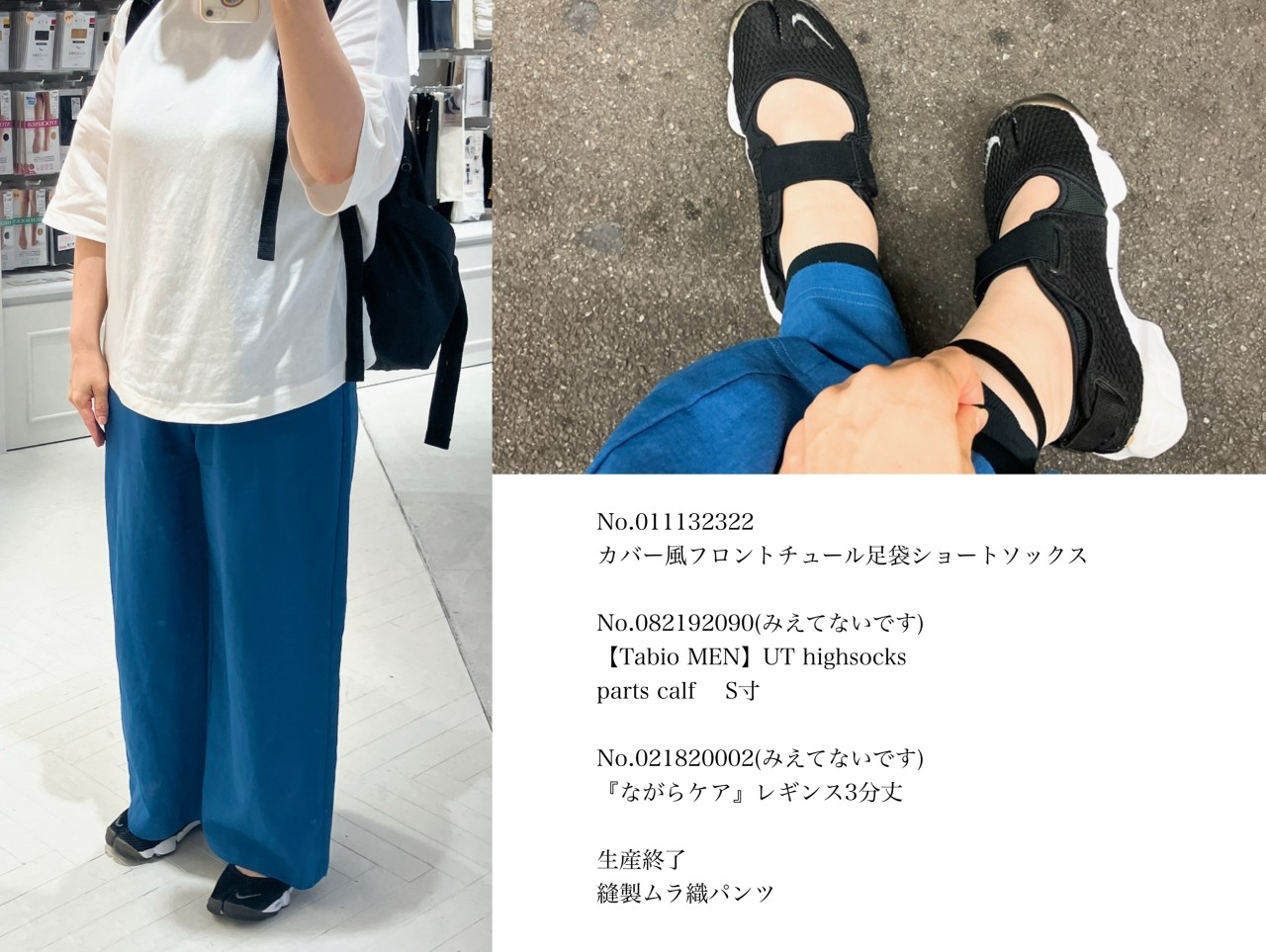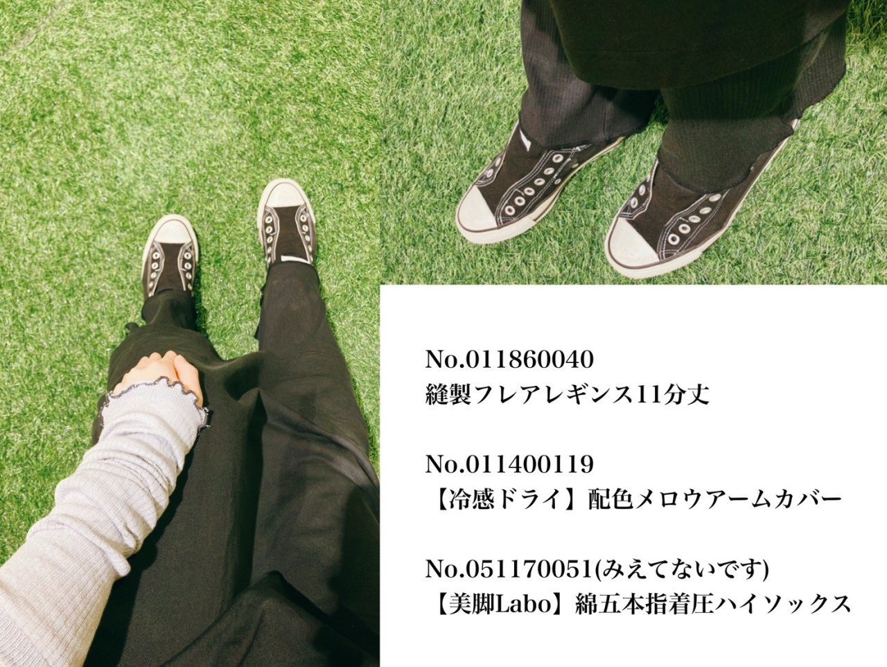 この日も、ストッキング感覚で履ける靴下と、タイツ風に履ける靴下を片脚ずつ履いています