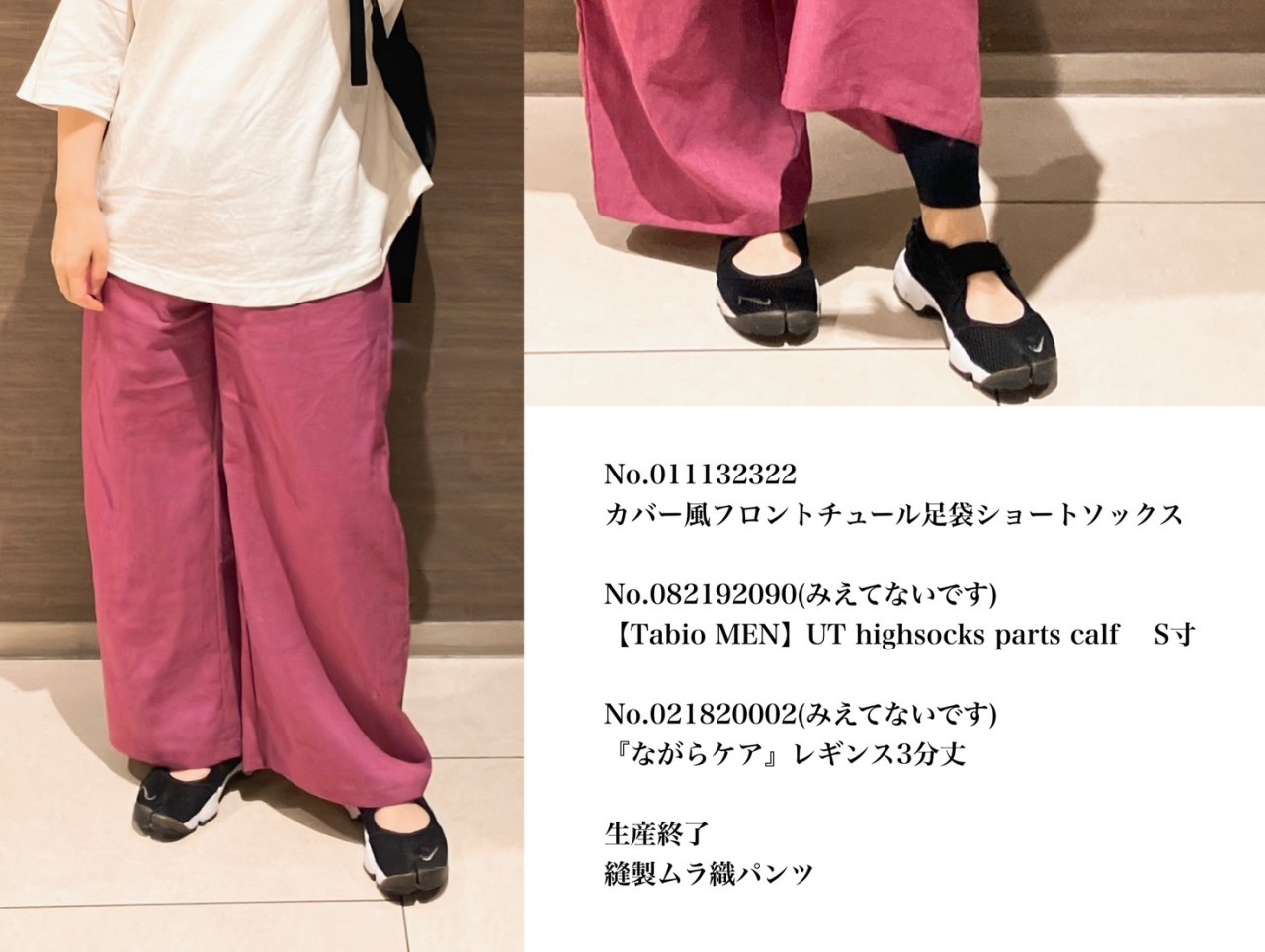 蒸し暑いので問い合わせ増えそうかなと、チュールパンツレギンスと、冷感レギンスの新カラー・ダルピンクを重ね履きしました