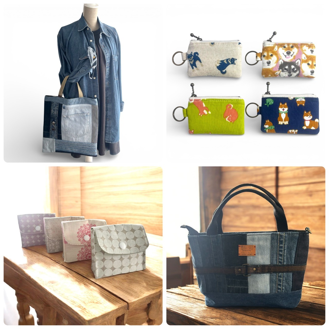 デニムやウールのはぎれを使って、バッグやポーチ、生活雑貨を製作しています。すべて一点物ですので、誰ともかぶらず個性的な作品を探してみてください。
