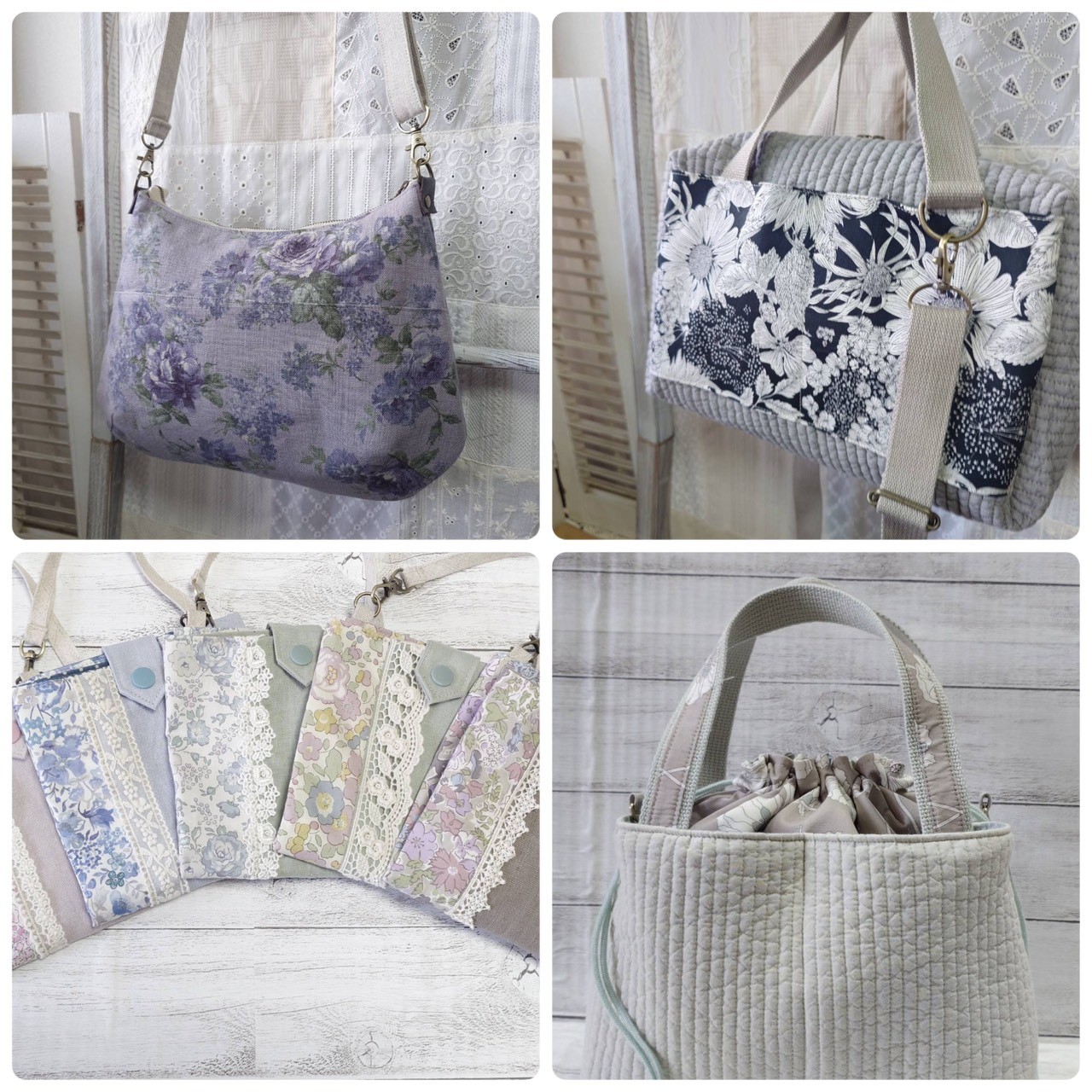 ■リネンやコットンにレースをあしらった布小物を作っています
