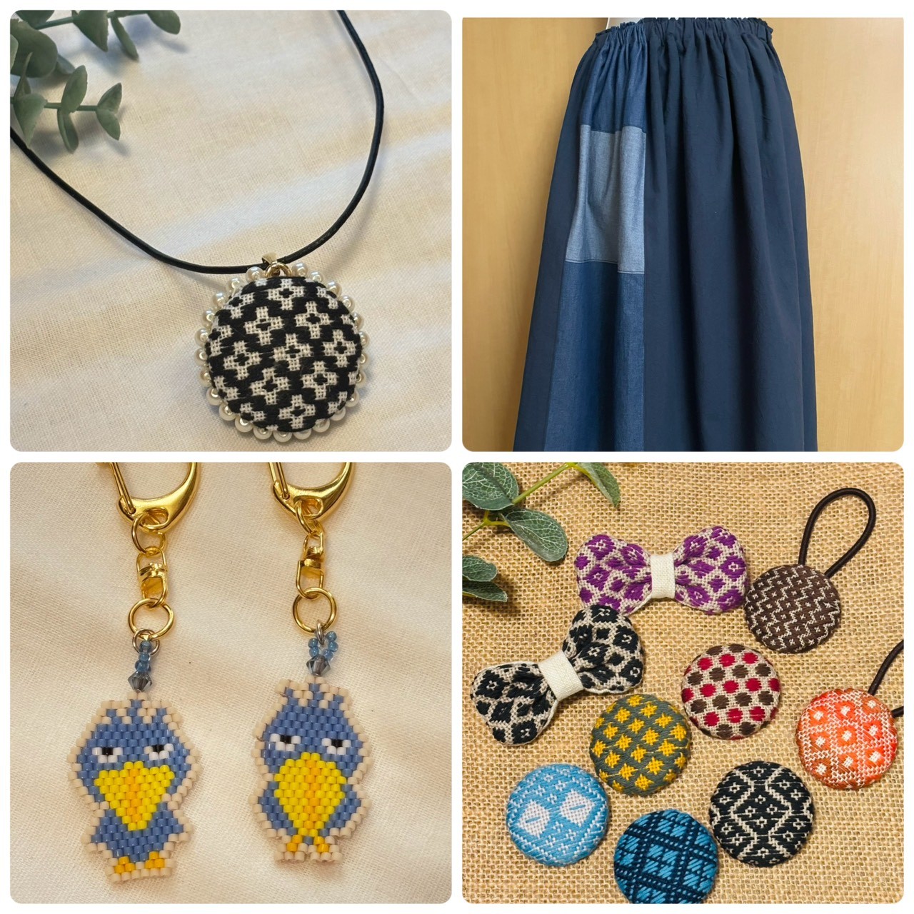 ■こぎん刺しの小物やバック、天然石を使ったアクセサリーやオルゴナイトチャームを販売しています