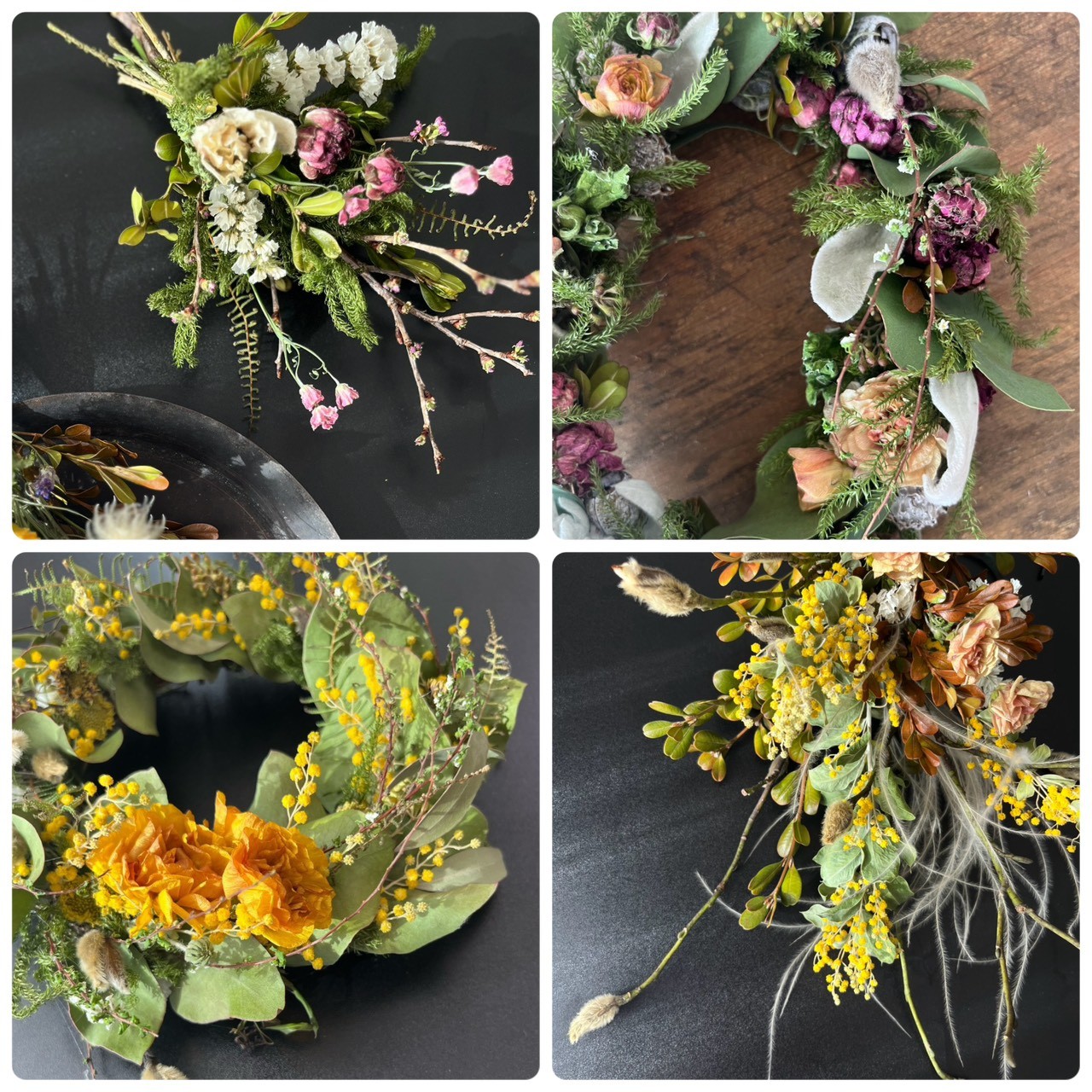 旬の花材を束ねて、ドライフラワーのリースやスワッグ、アレンジメントをお届けします。市場やガーデンで出会える季節の植物たちを使い、自然の移ろいを感じられるような作品づくりを心がけています。日常にそっと彩りを添える、そんな一品を見つけにいらしてください。