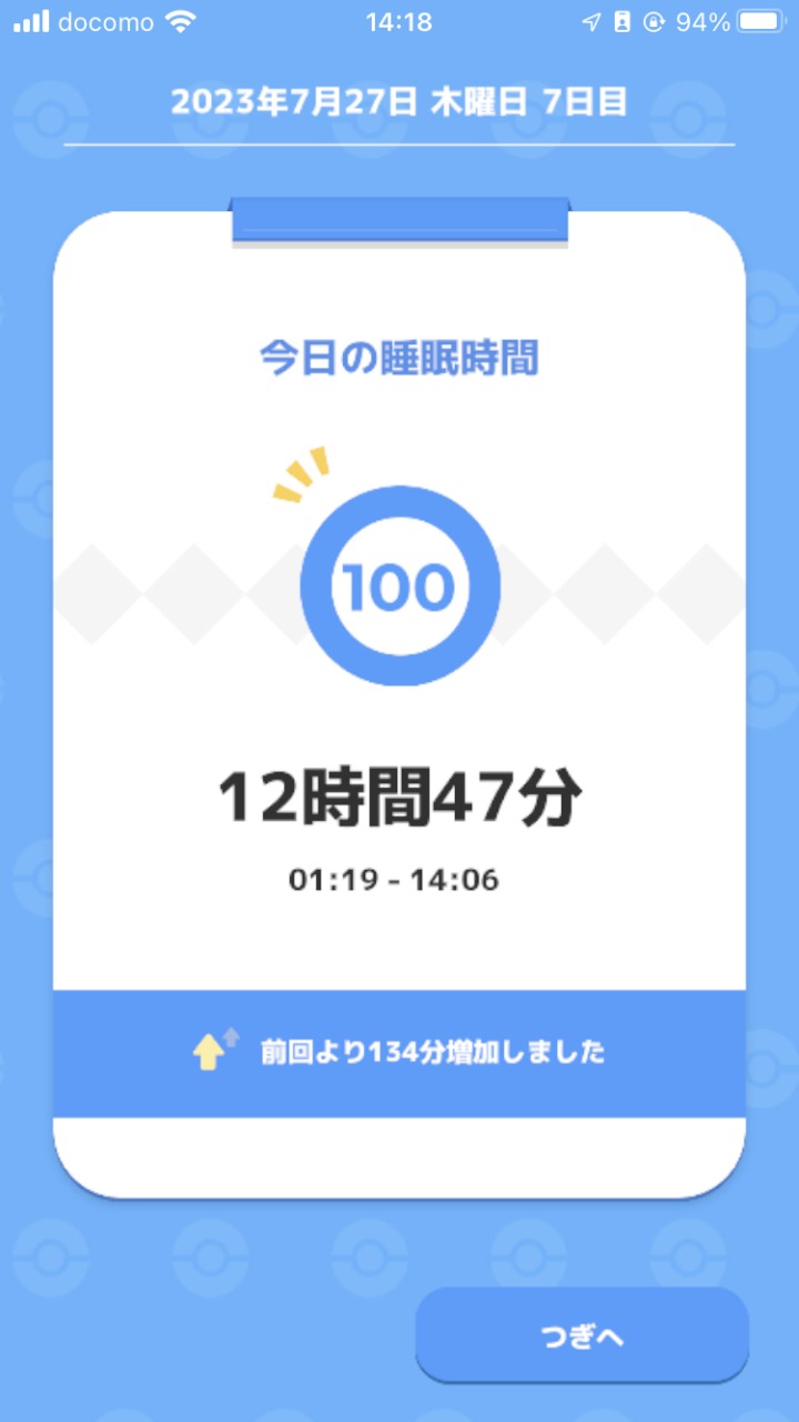 ※ここ1週間くらいはポケモンスリープのおかげで24時就寝、9〜12時起床になりつつあります。