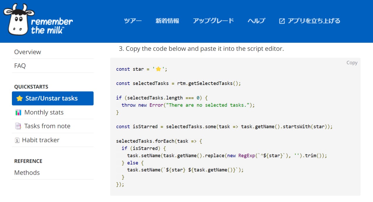 これからタスク管理アプリ『remember the milk(以下RTMと記述)』独自のスクリプトについて、いくつか使っているコードを紹介します。