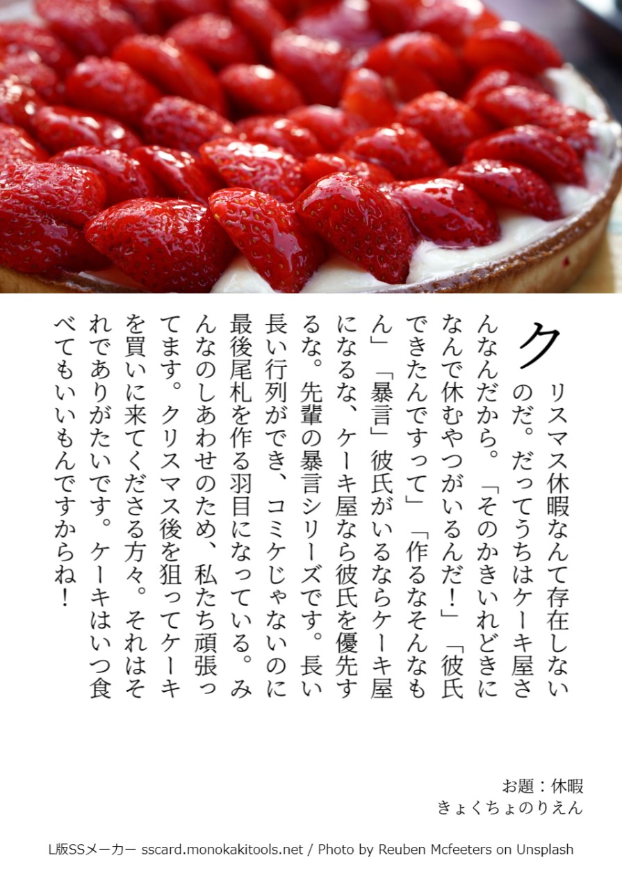 ケーキ屋で働いたことはないですが、クリスマス時期はすごいことなってそうだなと思いながら書きました。