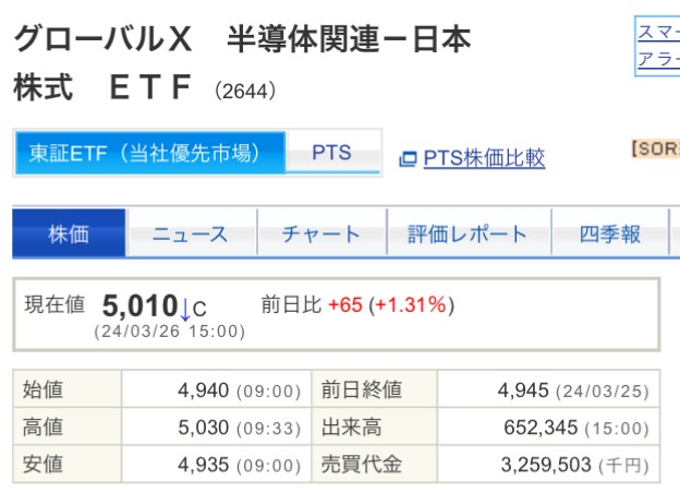 3/26 2644GX半導体日本株ETF