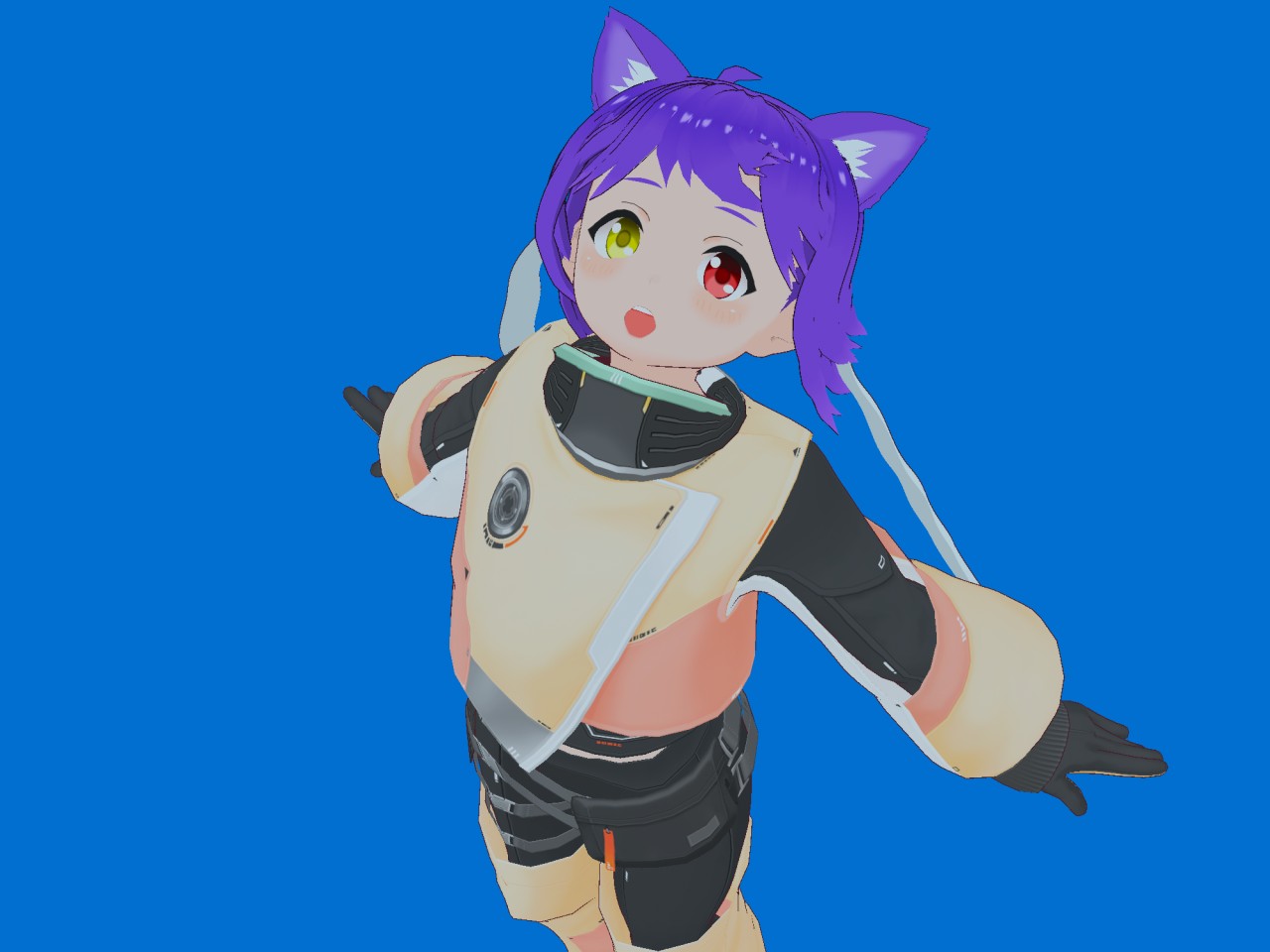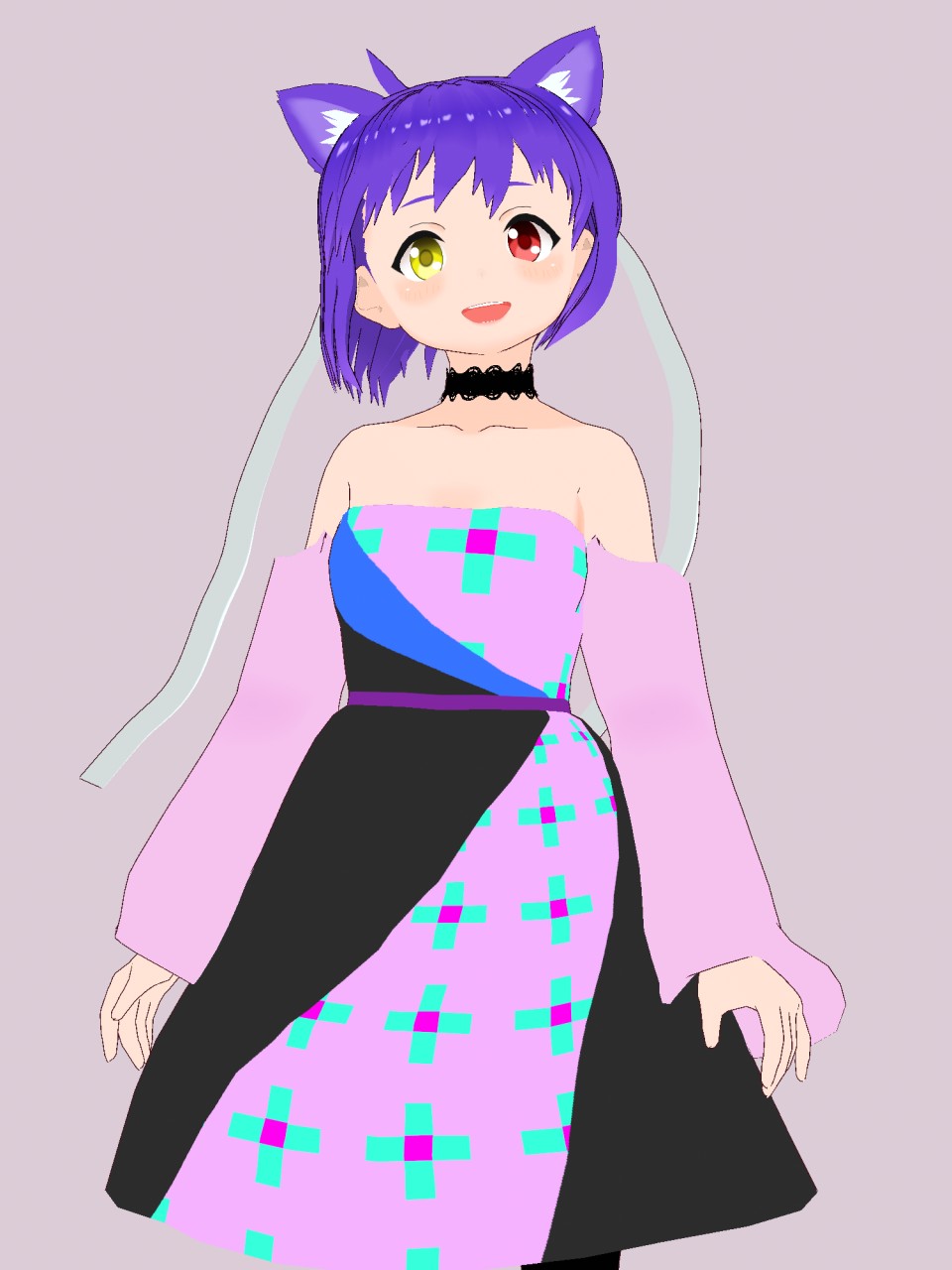 Vroidを始めた最初のころ、猫耳つけたキャラクターを作りたい!!となって、作成したキャラが小猫です。