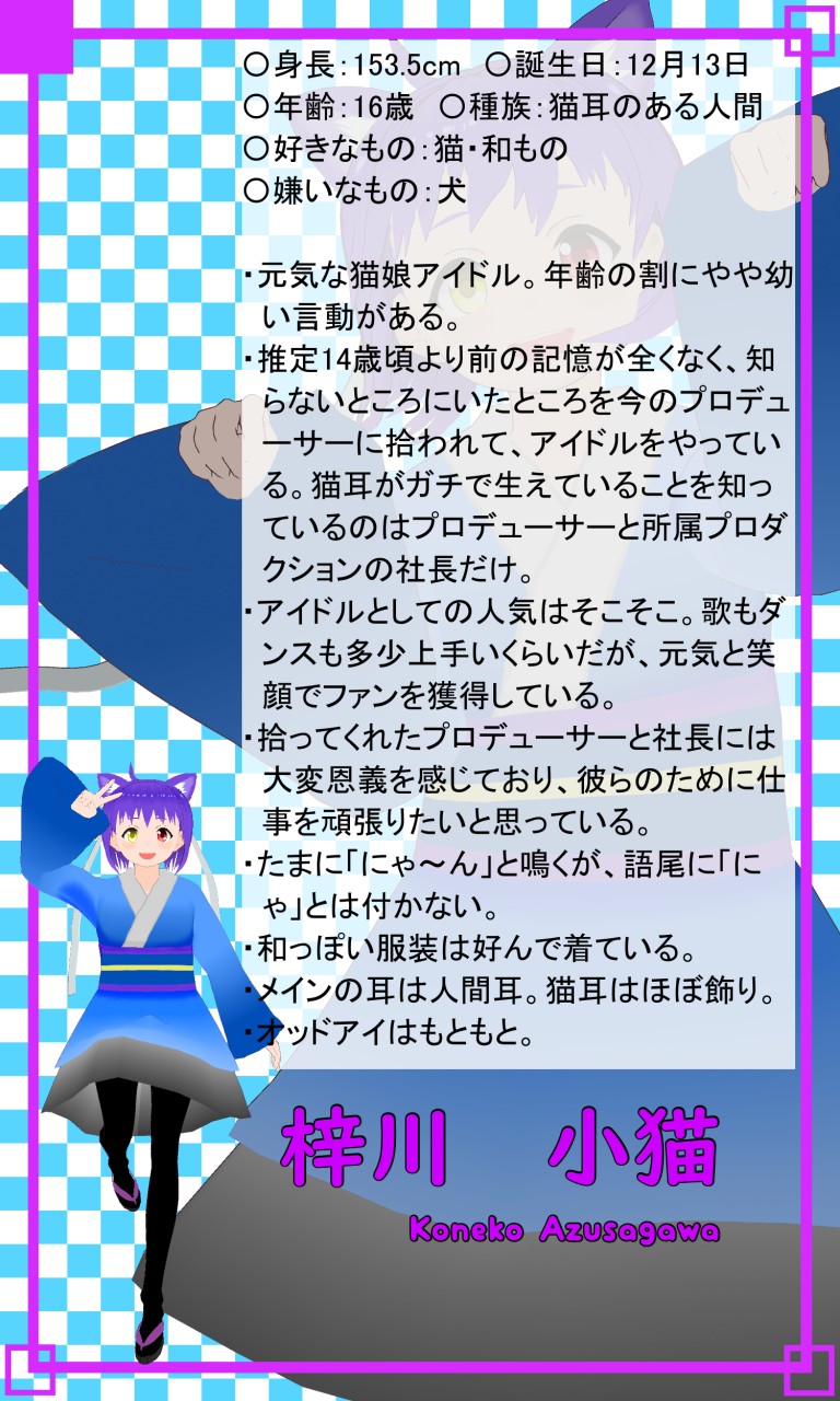 というわけで小猫はアイドル設定になりました。愛称は「ねこねこ」です。