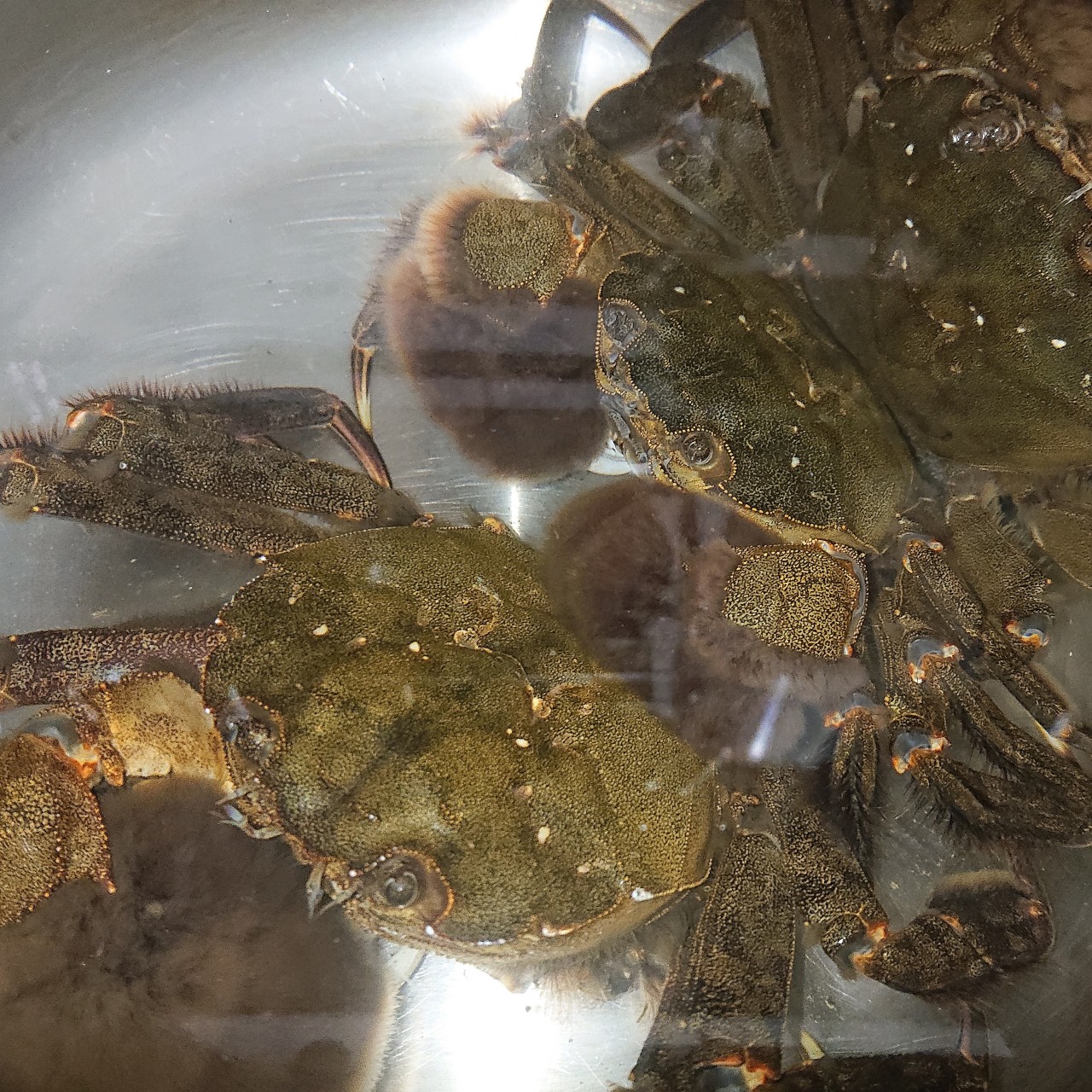 少し冷ましたら殻を開き、内子や脚の肉をこそぎ取って甲羅に盛る。