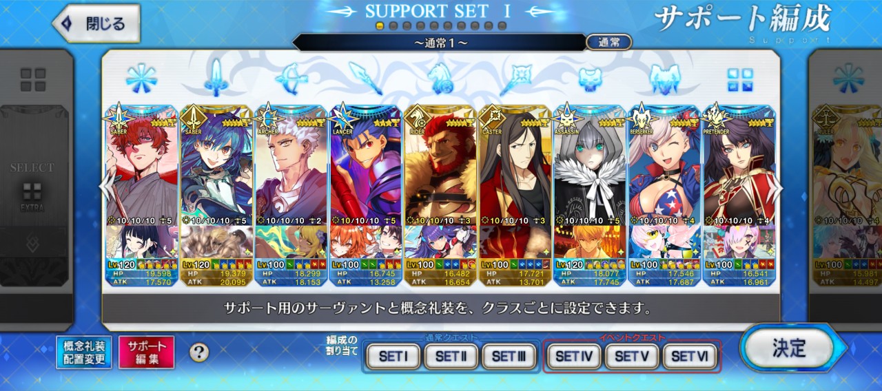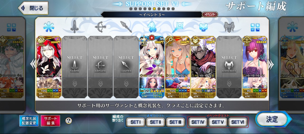 基本この編成。イベント編成は概念礼装が入れ替わってるだけのことがほとんどです。