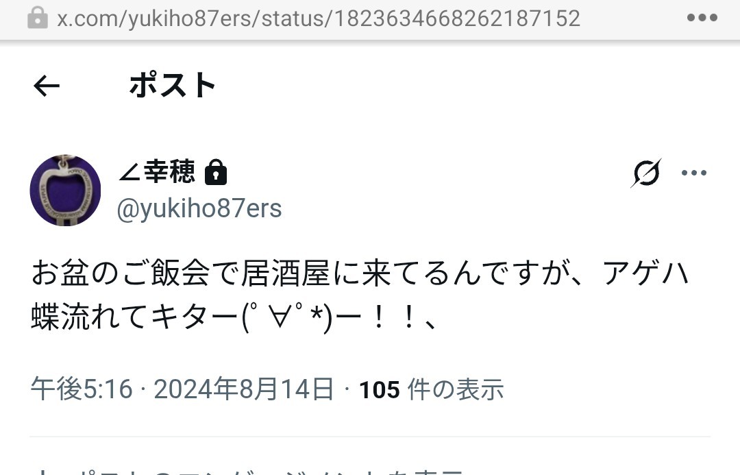 ポルノさん関係でどこ行った何食べたとかそんな感じです。日常はタイッツーに投げまくっているため最近ぺけったーへの出現率は低下中。ネタバレ絶対NG派。