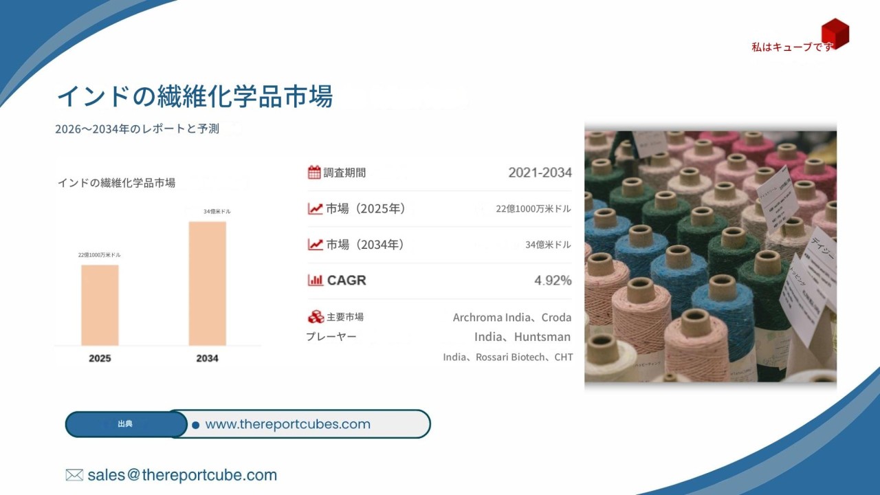 インドの繊維化学品産業の展望: 2034年まで年平均成長率4.92%の堅調な成長| The Report Cube
