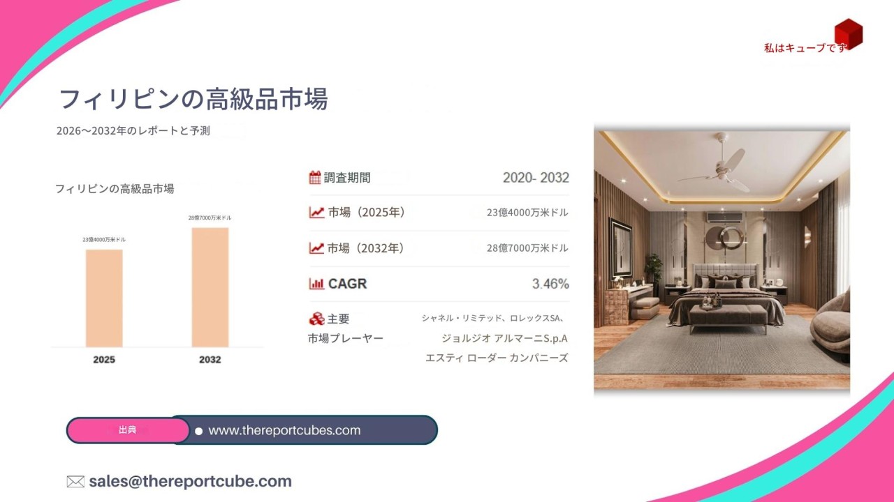 フィリピンの高級品市場予測:2032年までに売上高は3.46%のCAGRで28億7000万米ドルに達する見込み