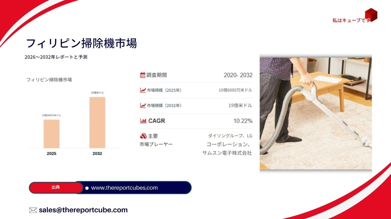 フィリピンの掃除機市場予測:2032年までに売上高19億米ドル、年平均成長率10.22%で成長