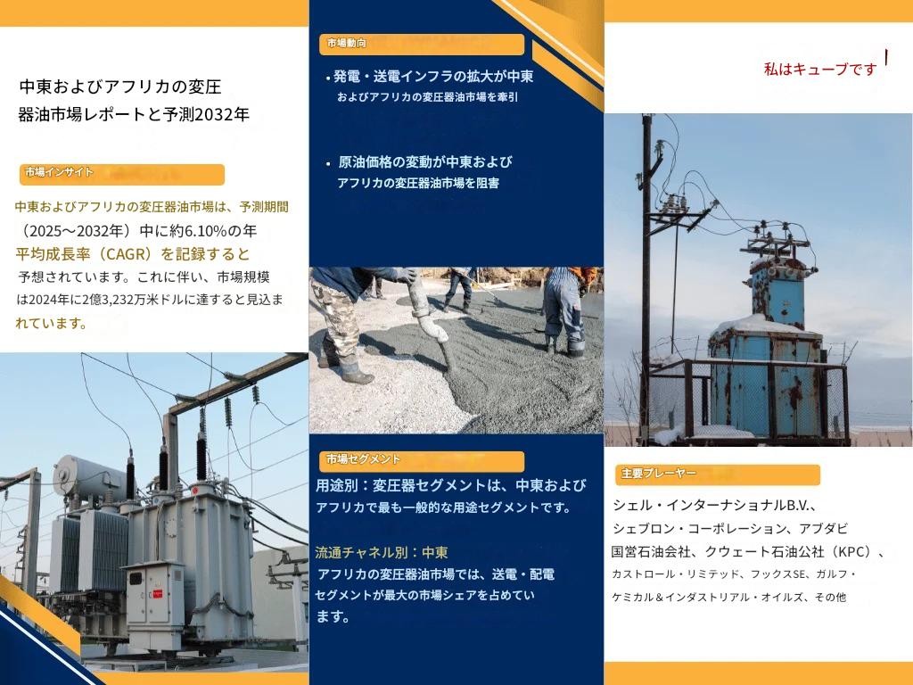 アラブ首長国連邦に拠点を置き、世界的な市場情報と戦略調査で信頼を得ているReport Cubeは、中東・アフリカの変圧器油市場に関する詳細な分析概要を発表しました。主要な業界関係者による主要な動向、戦略的展開、競争動向に焦点を当てています。本調査では、製品のイノベーション、合併・買収、提携、地理的拡大など、市場の勢いを形作り続けている最近の展開を捉えています。