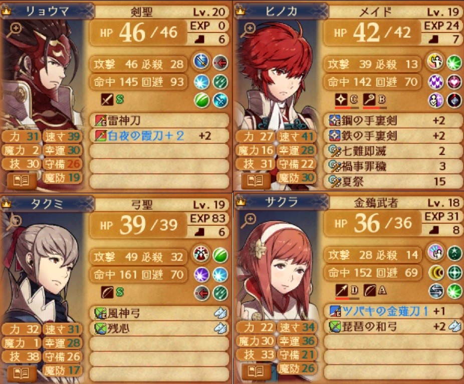 そして。27章出撃ステータスとスキル。