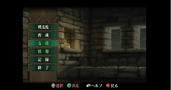 MAPクリア後にこの画面が出て、経験値の振り分け、スキル付け外し、支援会話等ができるようです。