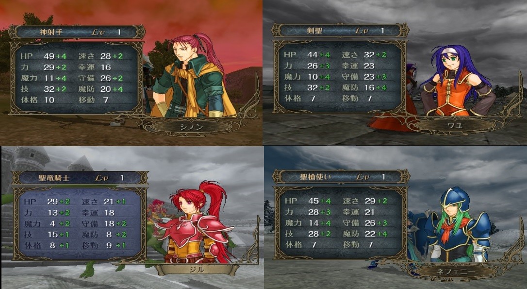 ジルは中間、シノンとワユとネフェニーは最高位にクラスチェンジ