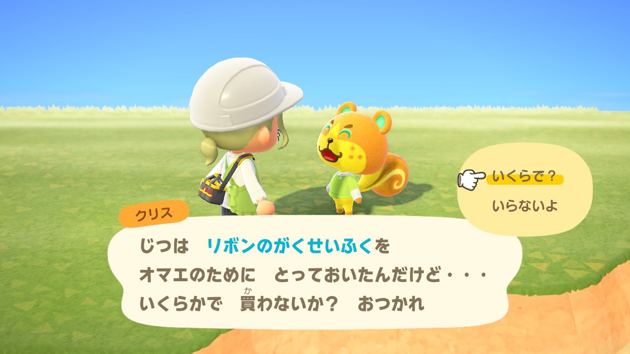 例えば学生服を渡してきたり(今回はリボンの学生服)。