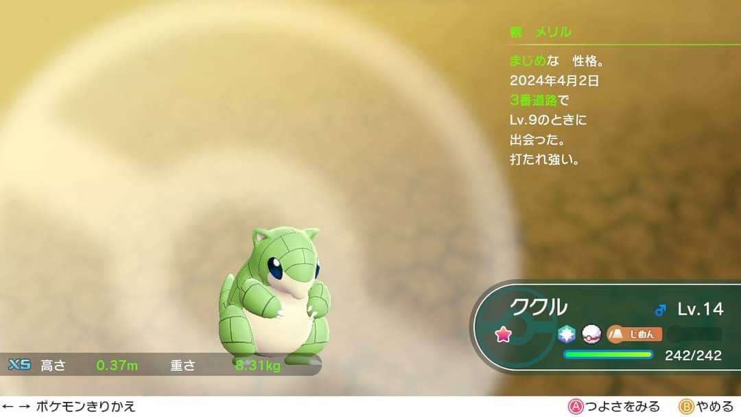 でも今は色違い粘りであまり構ってあげられていないので、様子を見ると( ´•ω•` )てしてる。