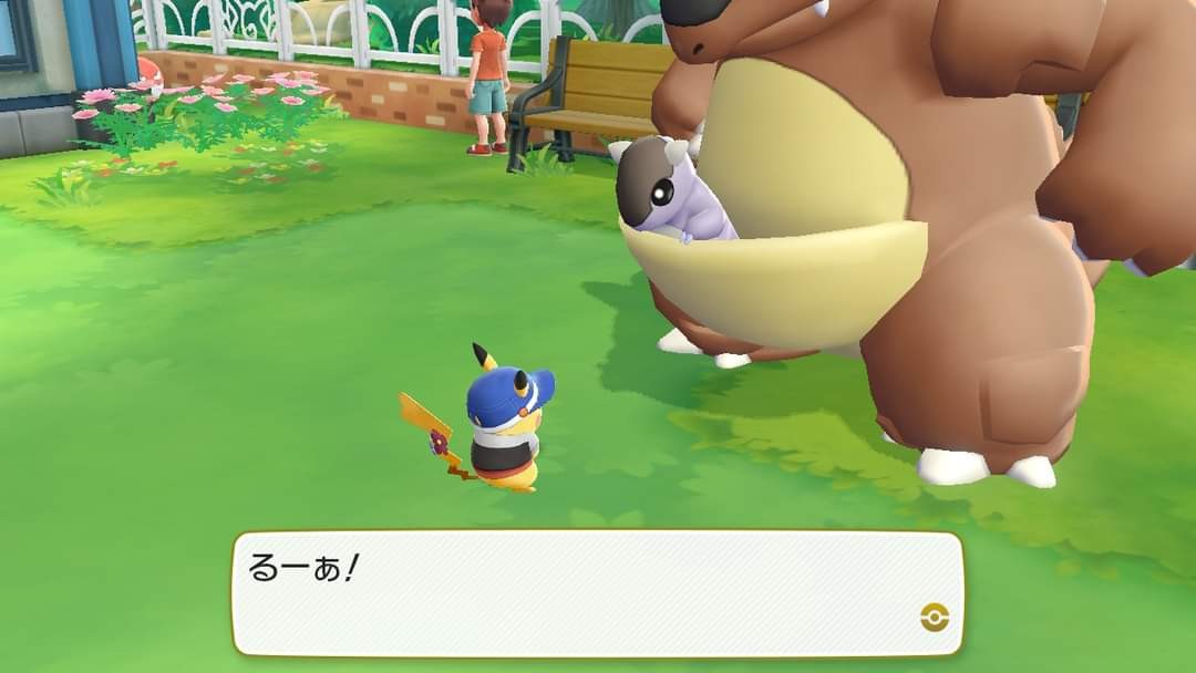 サファリパーク付近でガルーラの子と触れ合ったり。