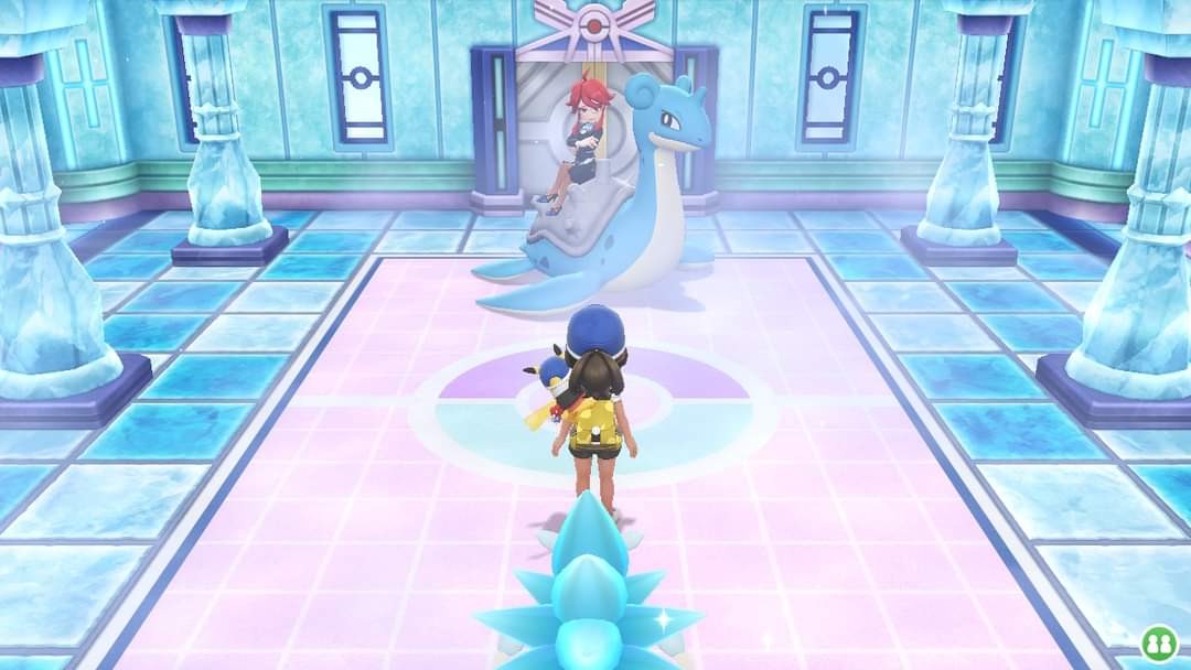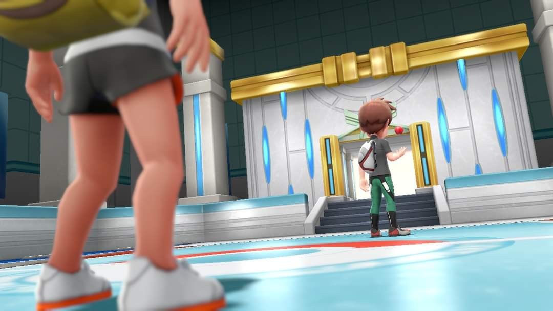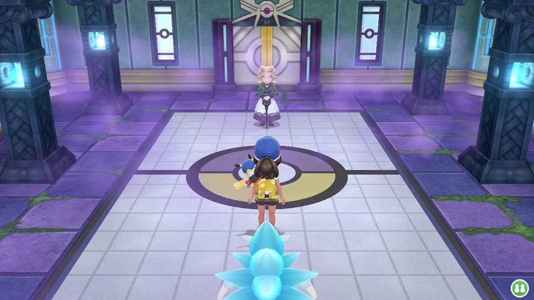奥が真っ暗でジムリーダーが誰か見えないようになってる仕様になっていて、足を踏み入れようとすると奥の部屋に電気が。
