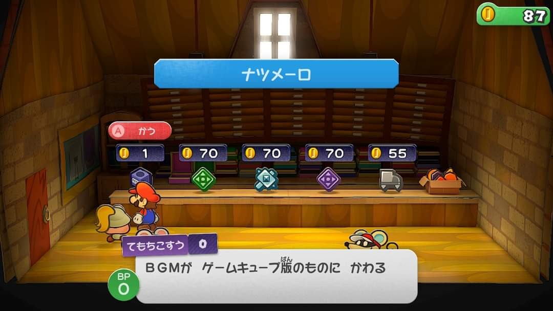先日ブログに上げてから我慢ならず遊び始めたペーパーマリオRPG。