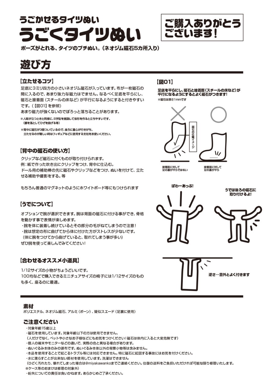 タイツぬいぐるみ取扱説明書