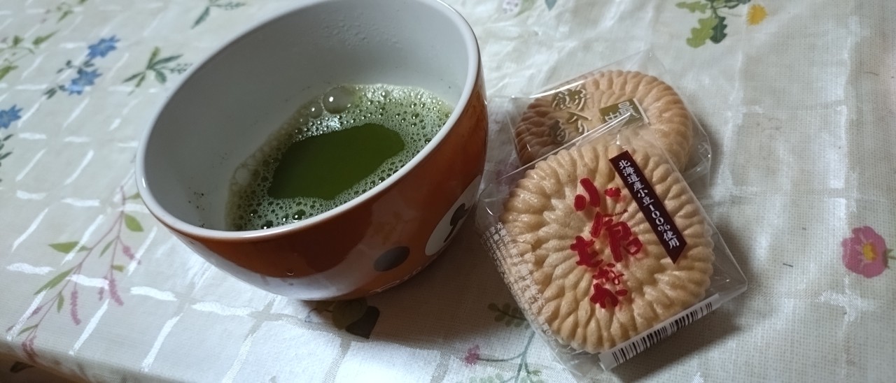 クレーンゲームでゲットした和菓子🍡と一緒にお抹茶頂きました!