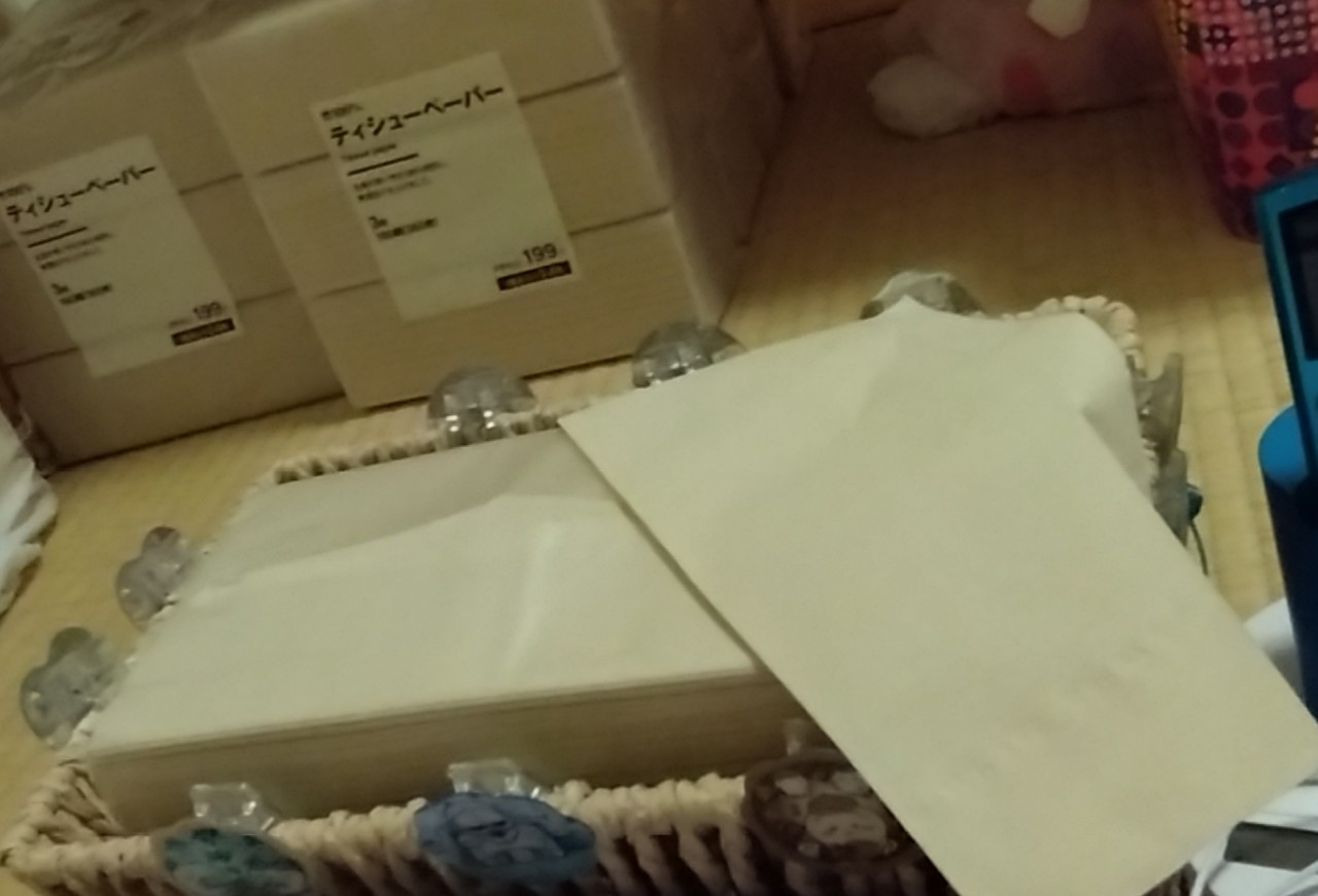 少し前から、無印良品のティッシュペーパー。3つで199円。を部屋用のティッシュペーパー。として使う様になりました✨私的には、便利です!