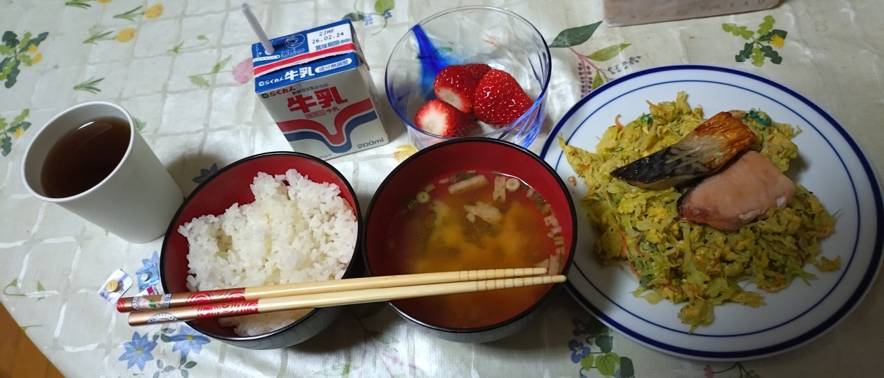 今朝は、こんな感じの朝ごはん。 ご飯150㌘、減塩味噌汁、 玉子焼き3つ、ウインナー1本、冷食2個、牛乳🥛200ml、バナナ🍌二…