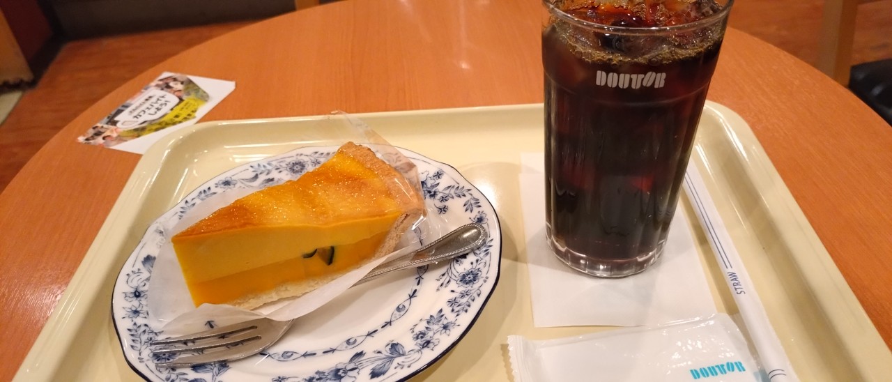 カボチャケーキとアイス珈琲を頂きました!カボチャケーキ美味しかったです。