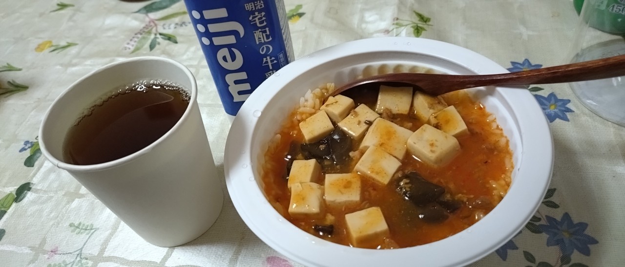 牛乳🥛とマーボー豆腐丼。 美味しかったです。