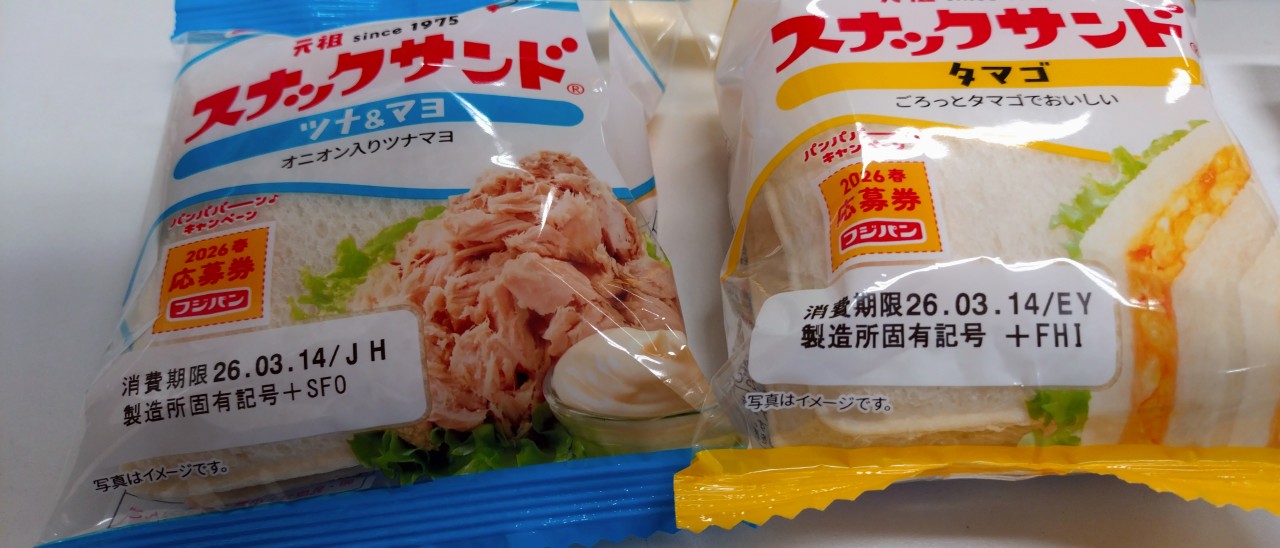 いつも通りランチパック2個です。