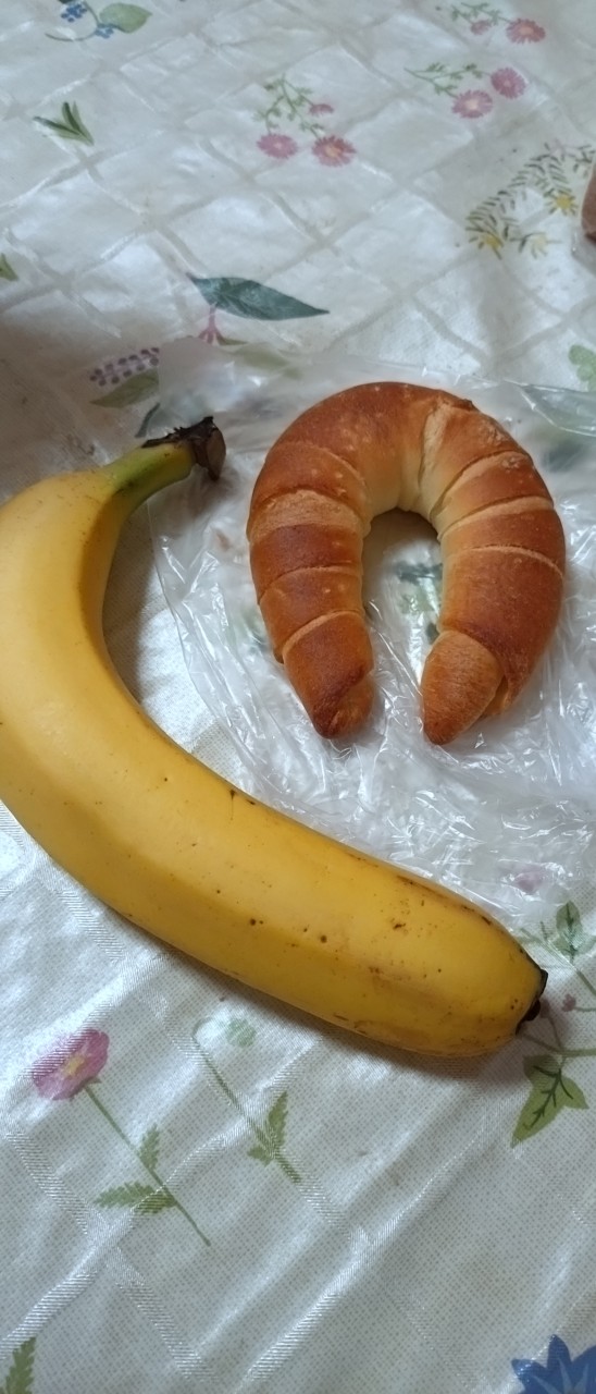 朝食べられ無かったバナナ🍌と、 内田パンのクレセントというパンを食べました!美味しかったです。