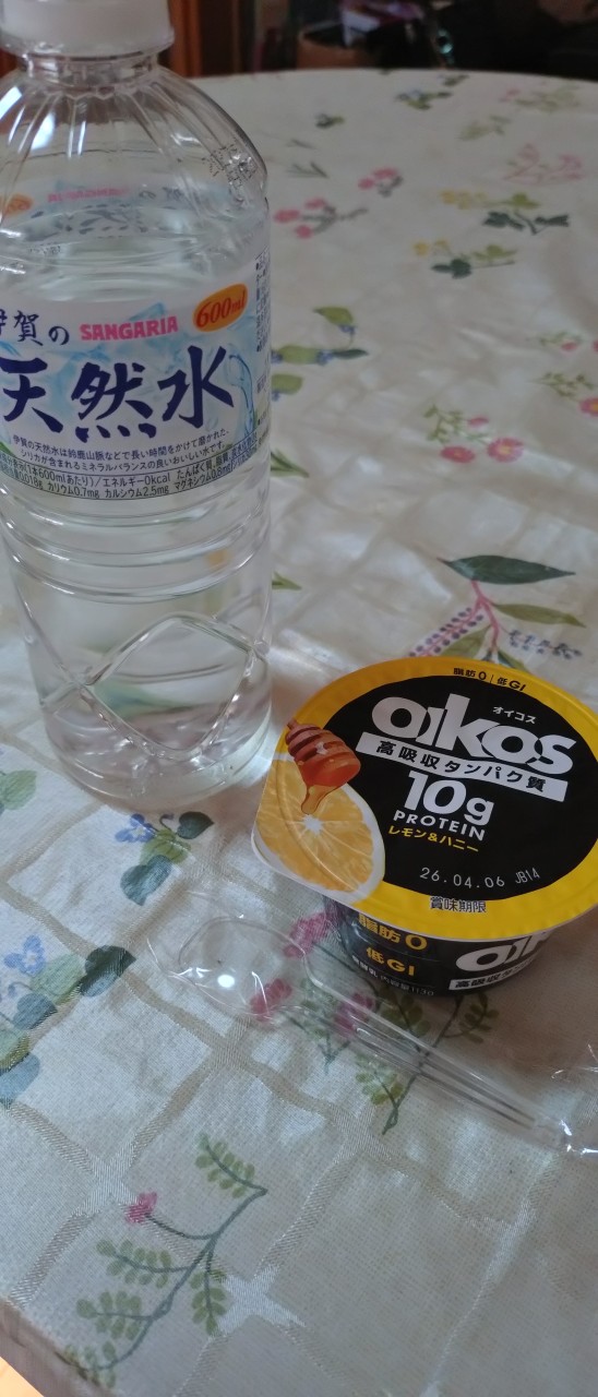 お散歩して汗かいたから、 シャワー浴びました🚿。 水分補給して、オイコスヨーグルト食べます🙇