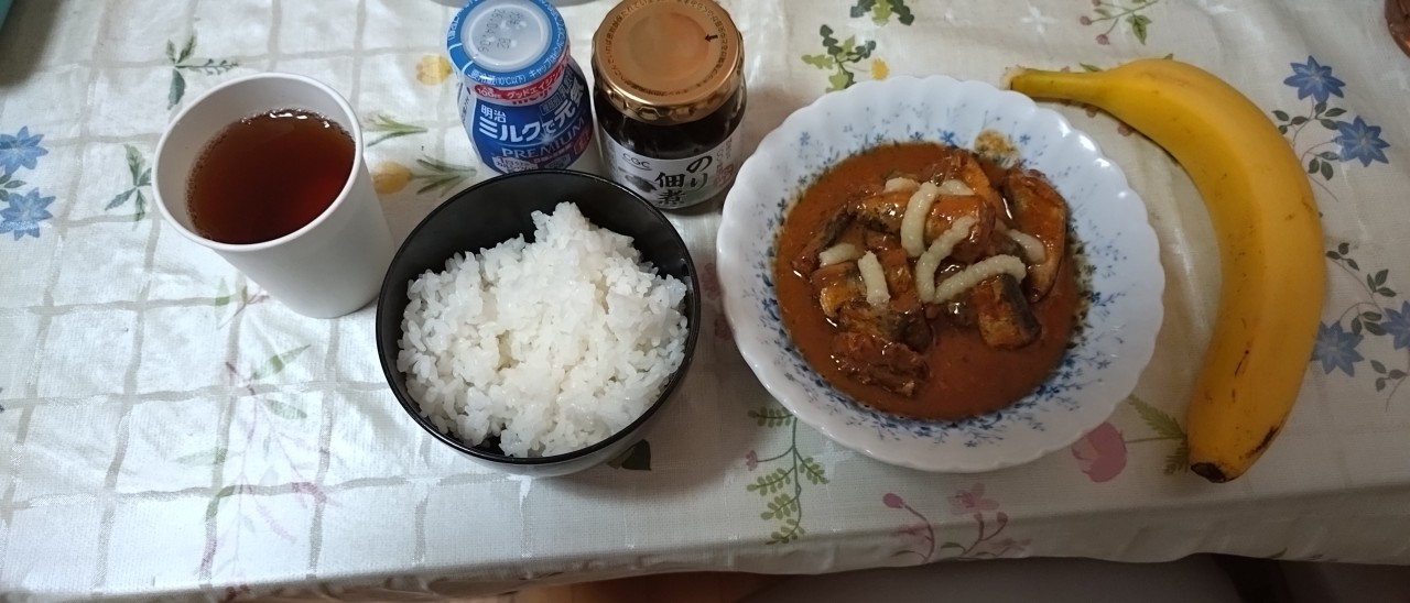 バナナ🍌1本、豆乳1杯。 麦茶。おかき煎餅。ピーナッツ🥜。 ミックスナッツ🥜。アーモンドフィッシュ。小さい干物。以上。