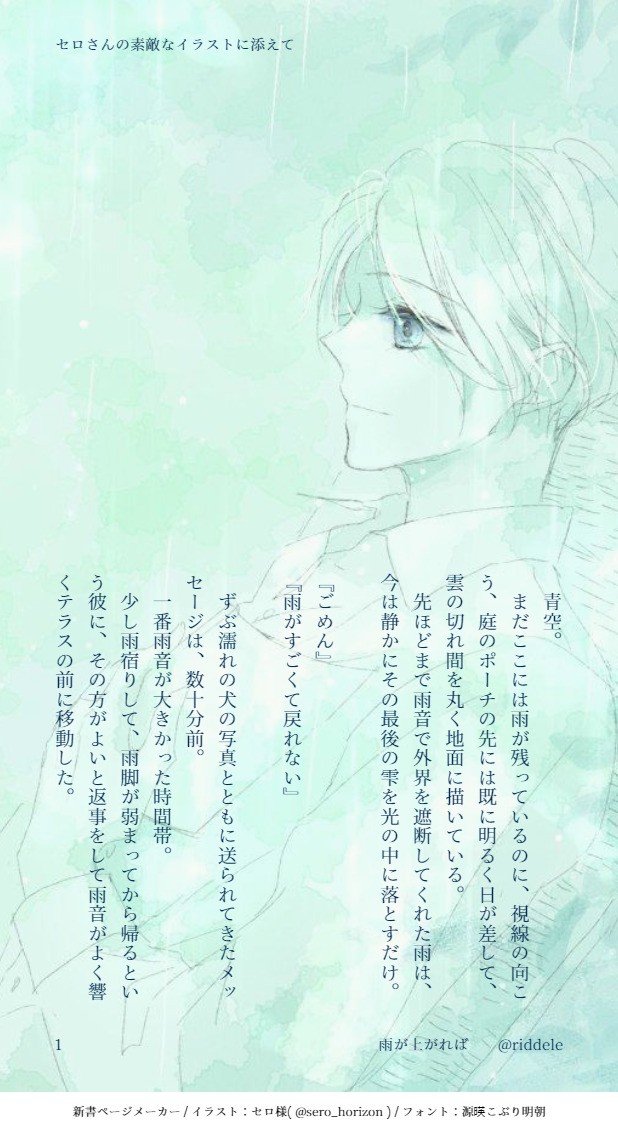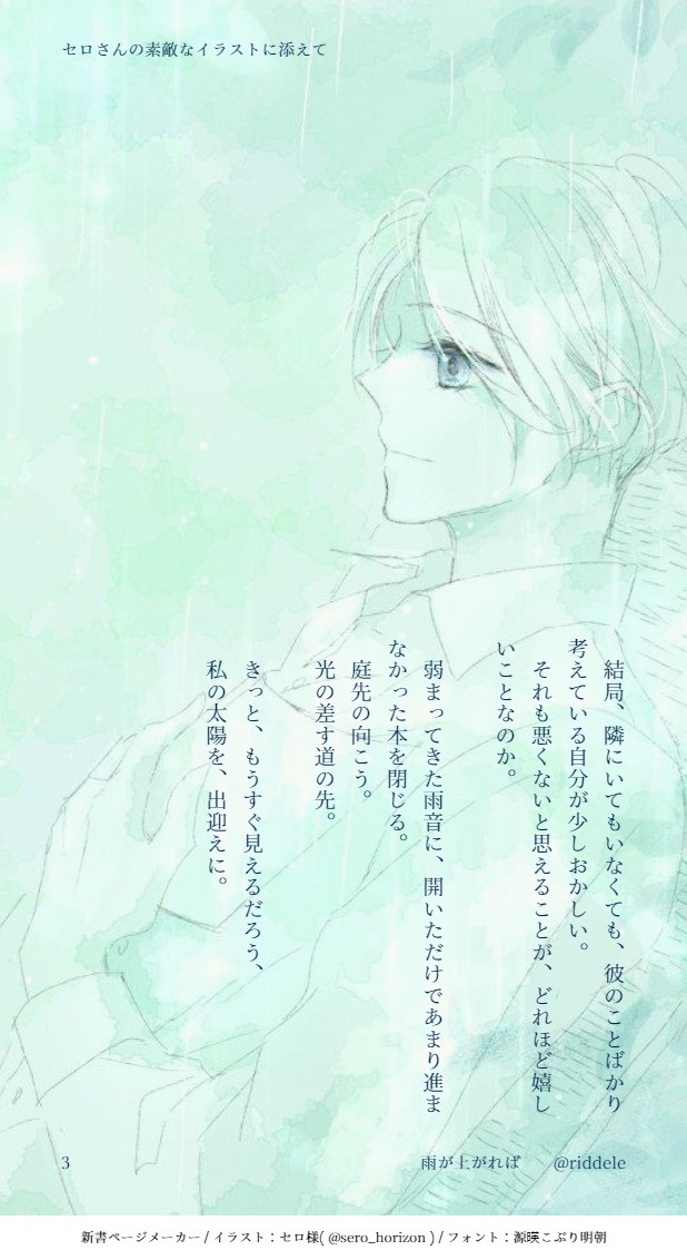 Twitterで拝見したセロ様( https://twitter.com/sero_horizon )のイラストにつけさせて頂いたSSです。