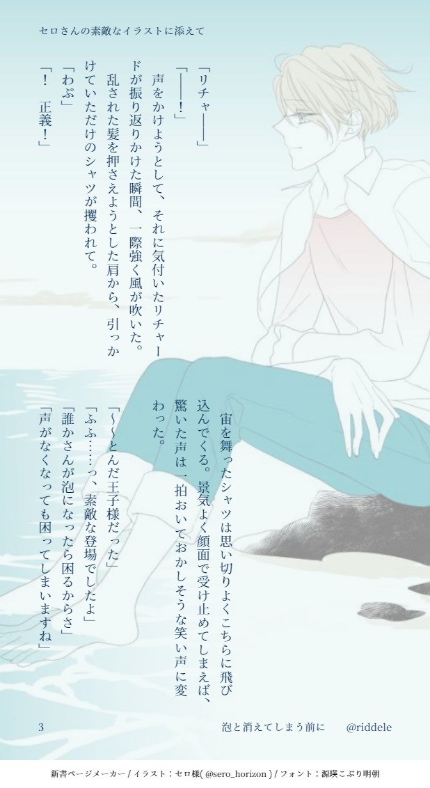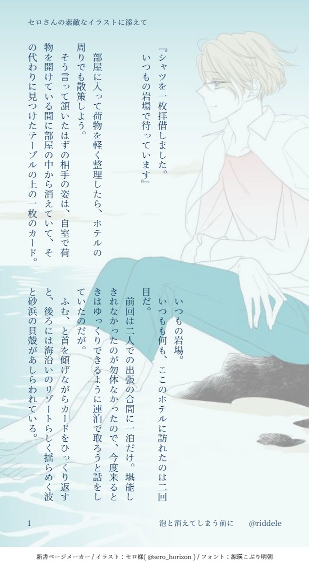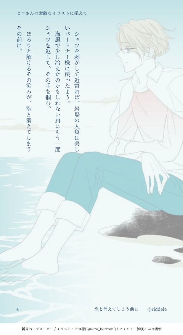 Twitterで拝見したセロ様( https://twitter.com/sero_horizon )のイラストにつけさせて頂いたSS第二弾です。