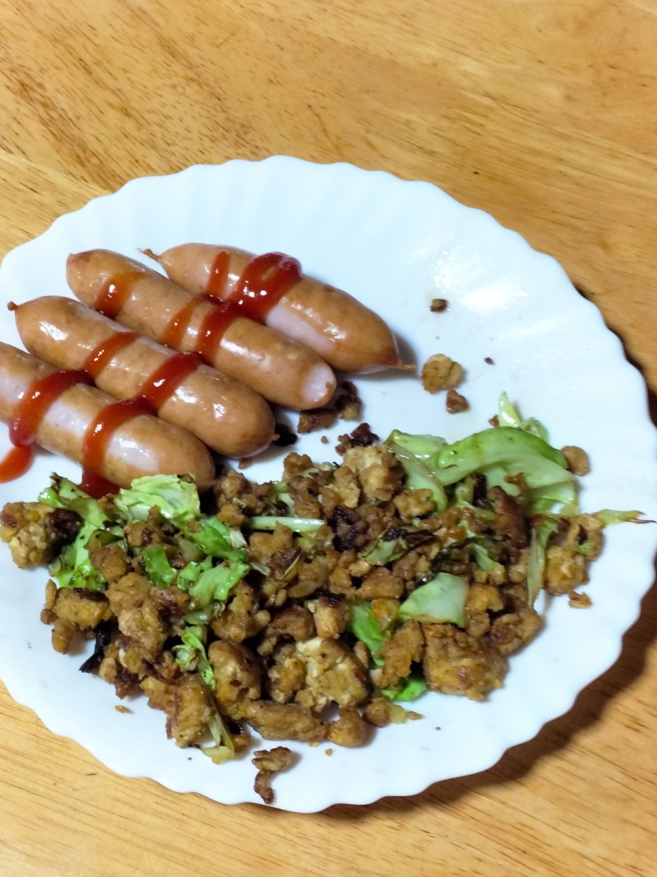 こんばんは(*・ω・)ノ今日は朝ご飯にキャベツと卵炒めを作りました!