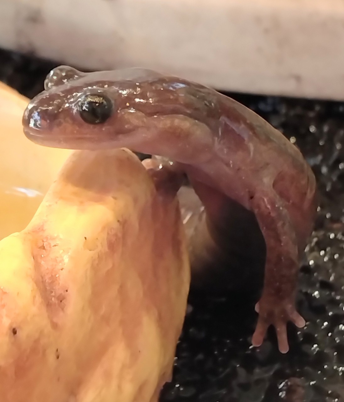 大雪山系で野生のエゾサンショウウオは何度も見ているが、人に飼われている個体を見るのはこれが初めて。すっかり気に入ってしまい、毎日のように会いに来ている。