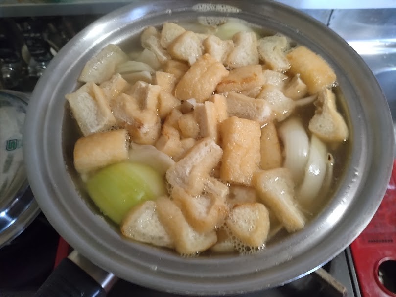 昨日は煮詰めてしまったので、今日は失敗しない予定。油揚げを多めに入れてみた。