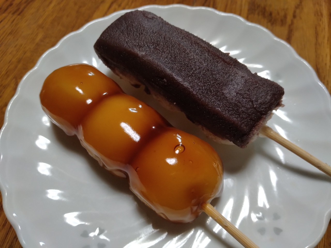 ・串に刺してみたらしのタレと、小豆餡を塗ったくって出来上がり。#串団子 #レシピ