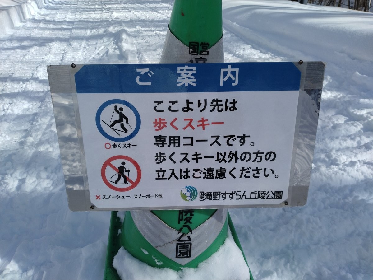 ノルディックスキー専用コースにスノーシューで入ることは禁止されているが、コース幅によってはスノーシュー無しの徒歩なら歩いても良いノルディックスキーコースもある。ノルディックスキーもスノーシューも立ち入り禁止という区域もあるので、それらを把握するのに少し時間と経験が必要かもしれない。