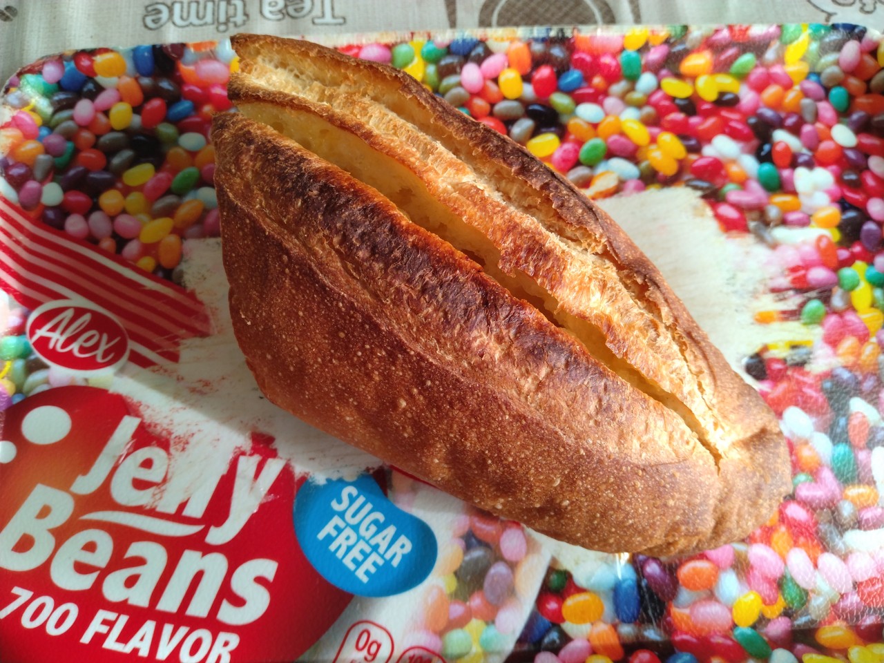 donguriで買ったバタールの真ん中に切り込みを入れ、バターを挟んで丸ごとオーブンで焼いた。凄く満足した。